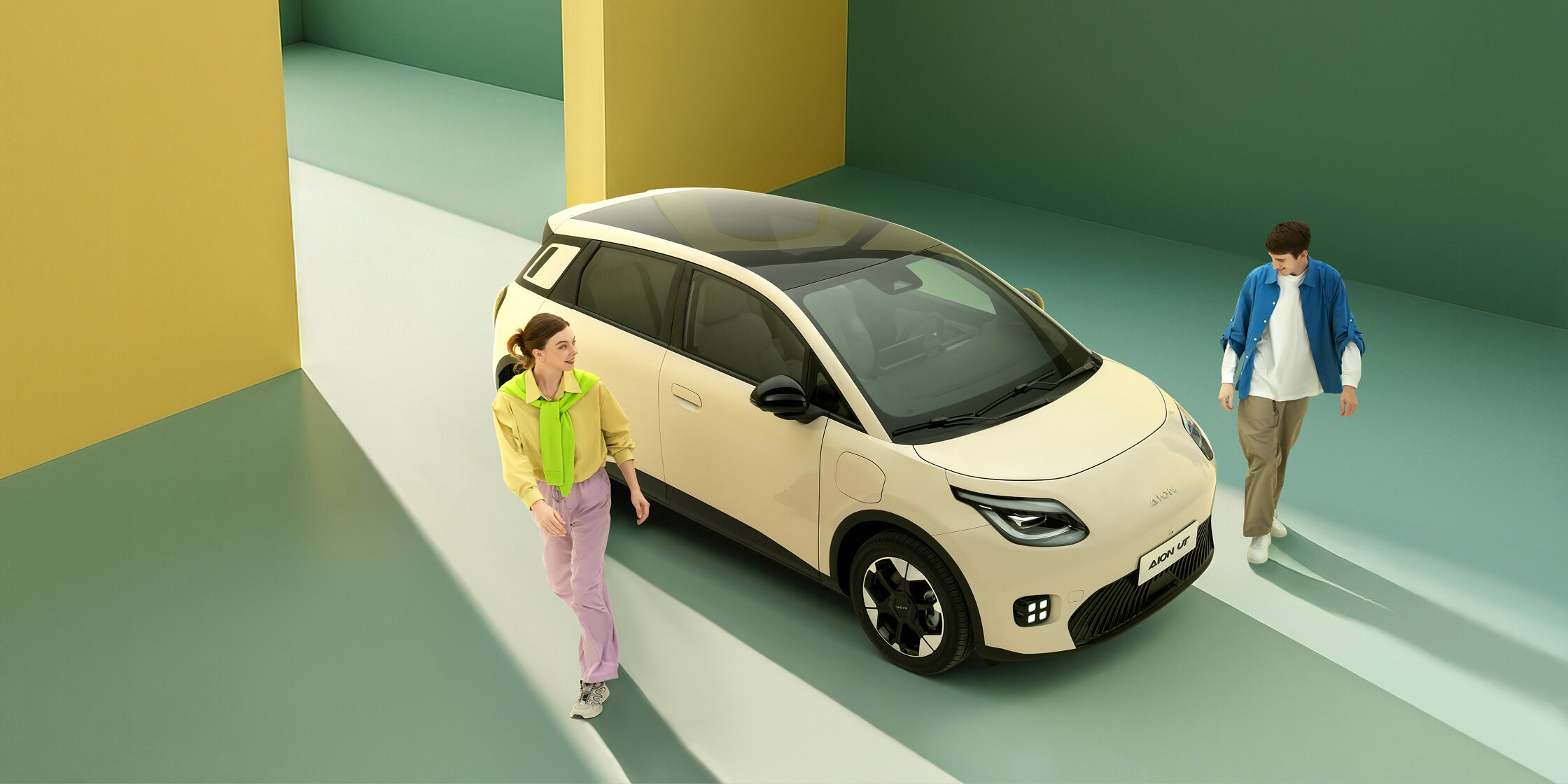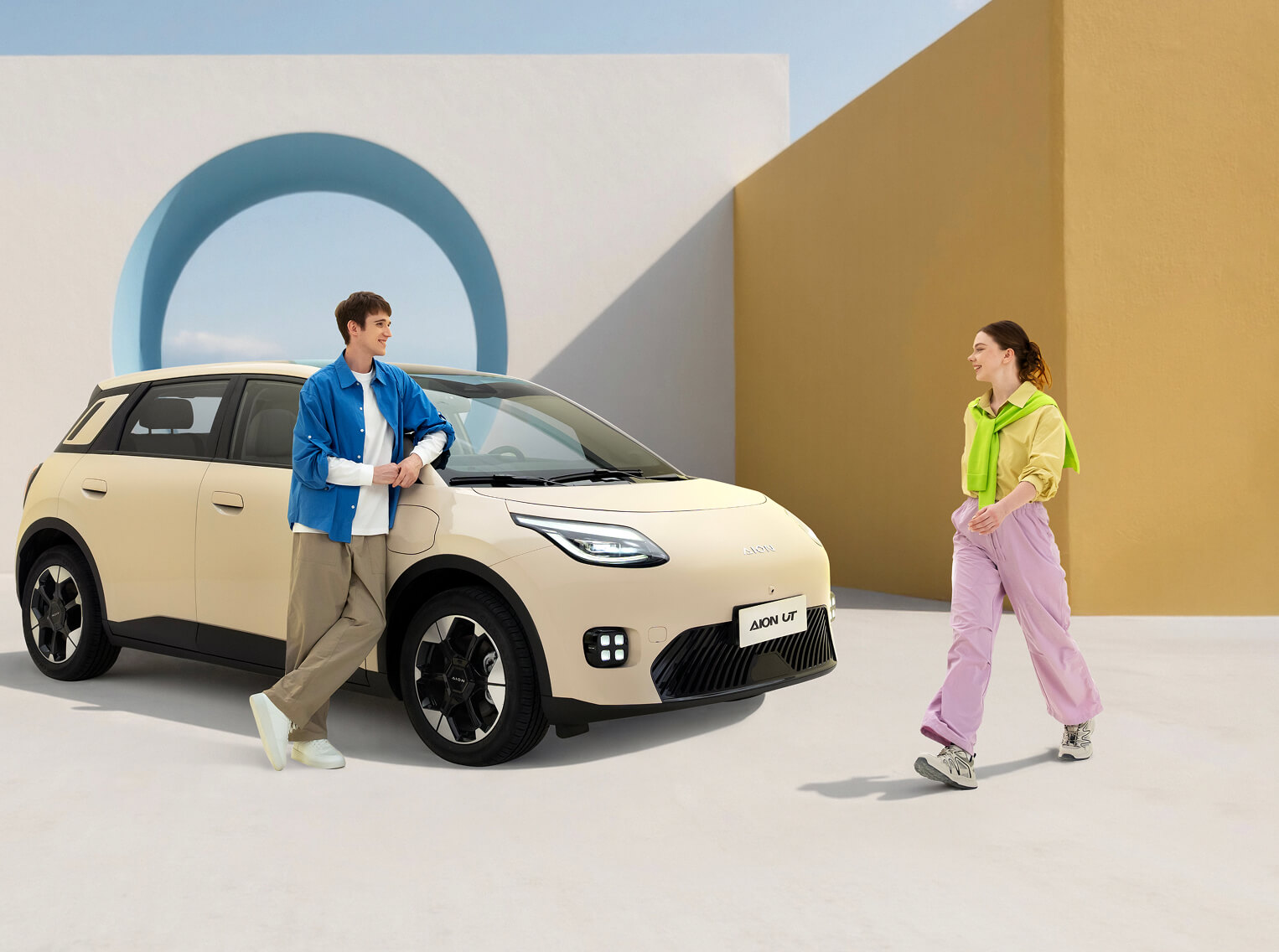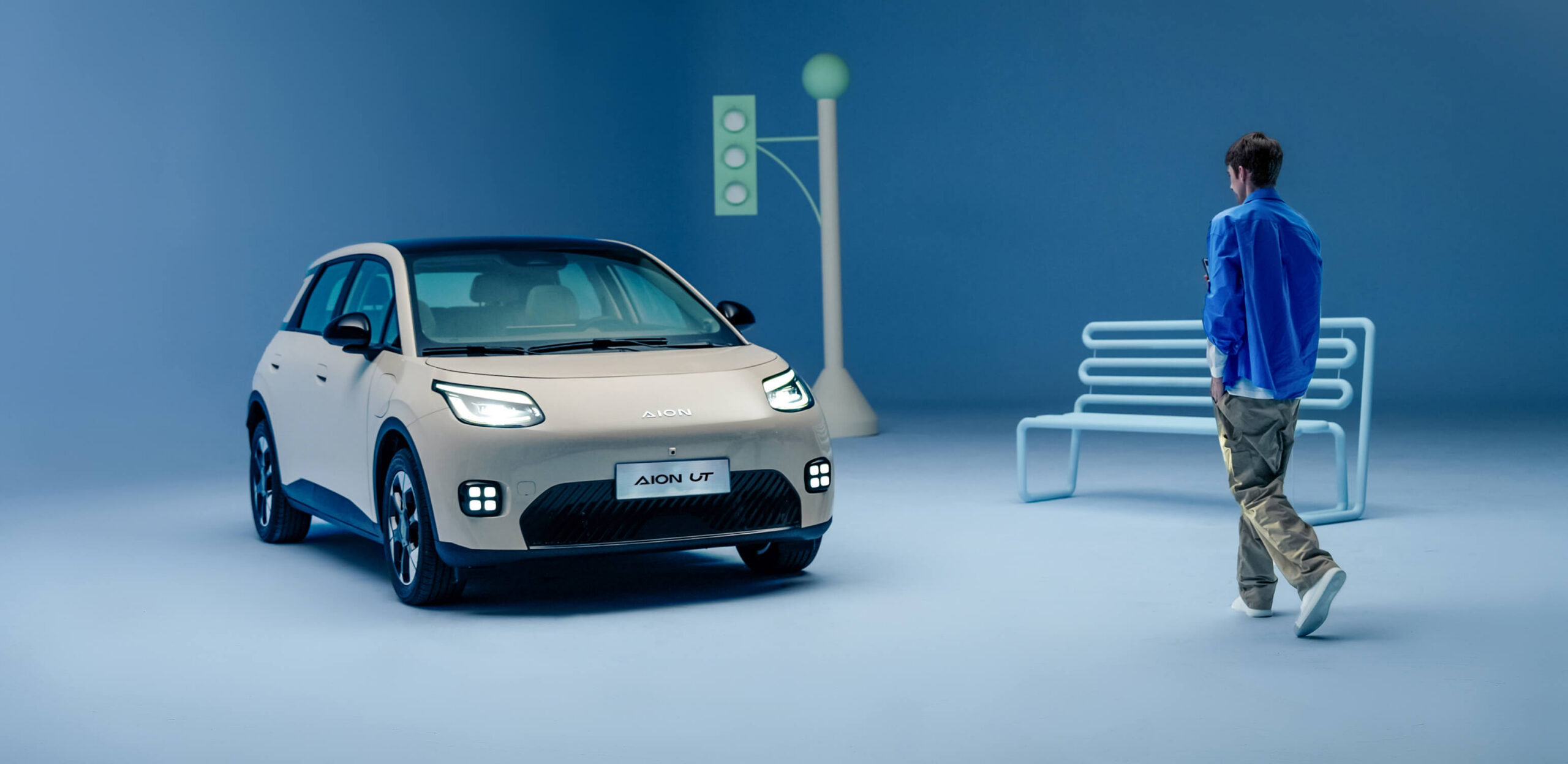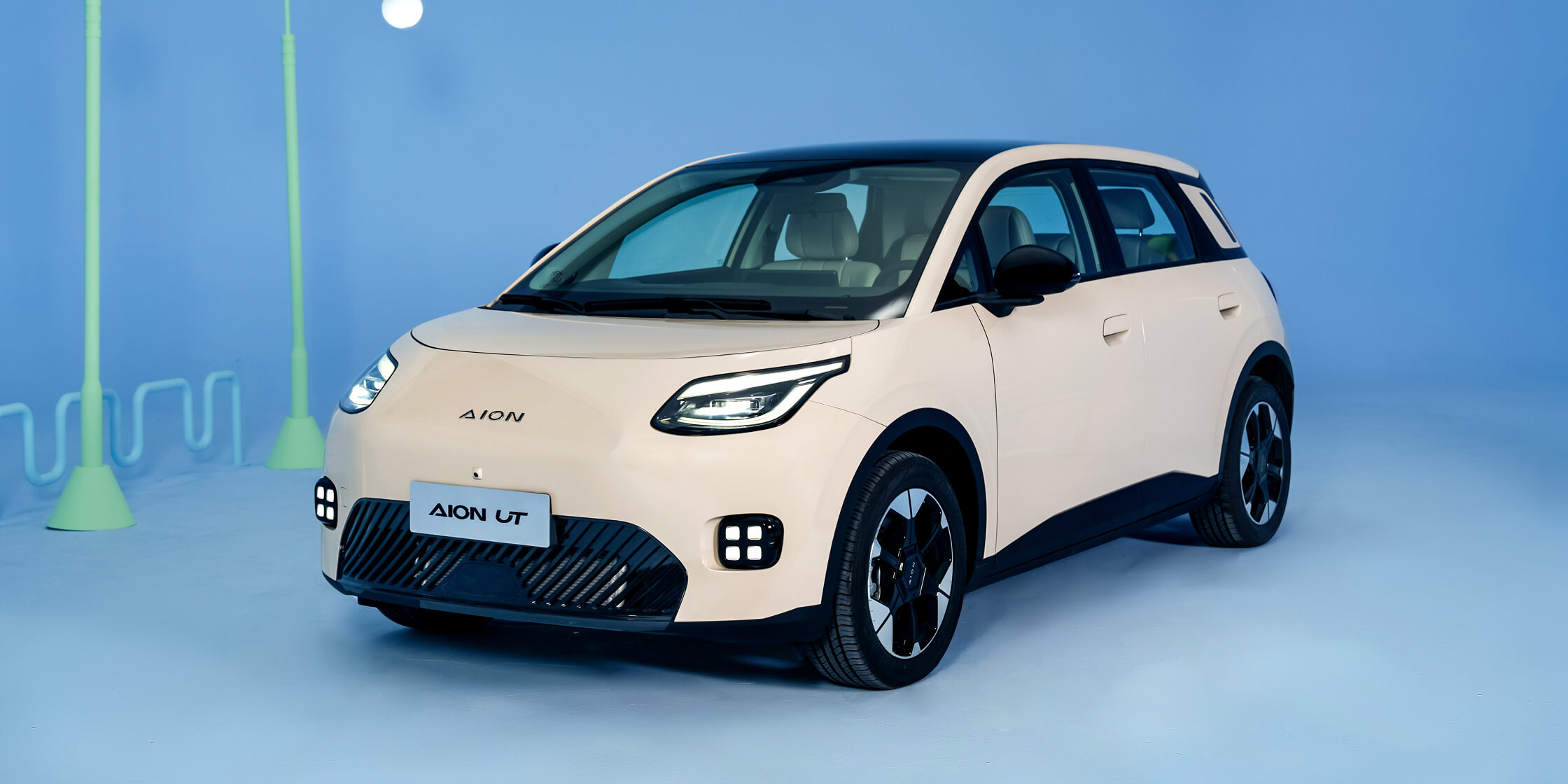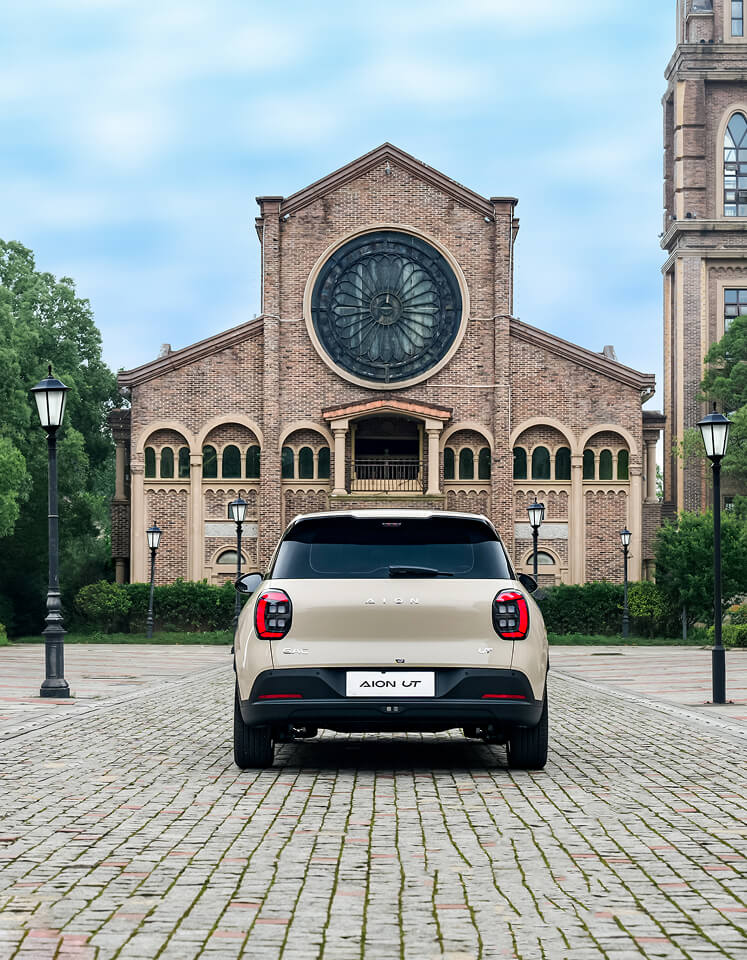 Sylwetka AION UT została zaprojektowana z myślą o miejskim otoczeniu, łącząc nowoczesną estetykę z wyrazistymi detalami. Proporcjonalna bryła i dynamiczne linie nadają samochodowi lekkości oraz nowoczesnego charakteru.