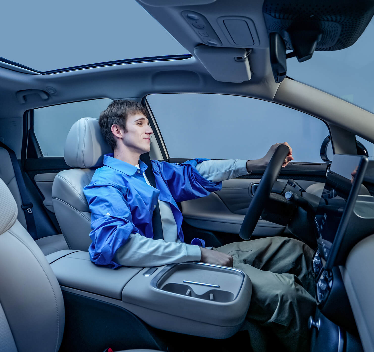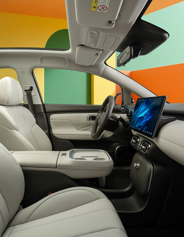 Tylna kanapa została zaprojektowana tak, aby zapewnić wygodę trzem dorosłym pasażerom, a skuteczne wyciszenie wnętrza sprzyja spokojnej jeździe. Duży dach panoramiczny wypełnia wnętrze naturalnym światłem, potęgując wrażenie przestronności i podnosząc komfort podróżowania.