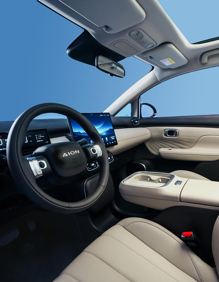 Dzięki długiemu rozstawowi osi, wynoszącemu 2750 mm, kabina AION UT oferuje ilość miejsca porównywalną z samochodami wyższych segmentów.