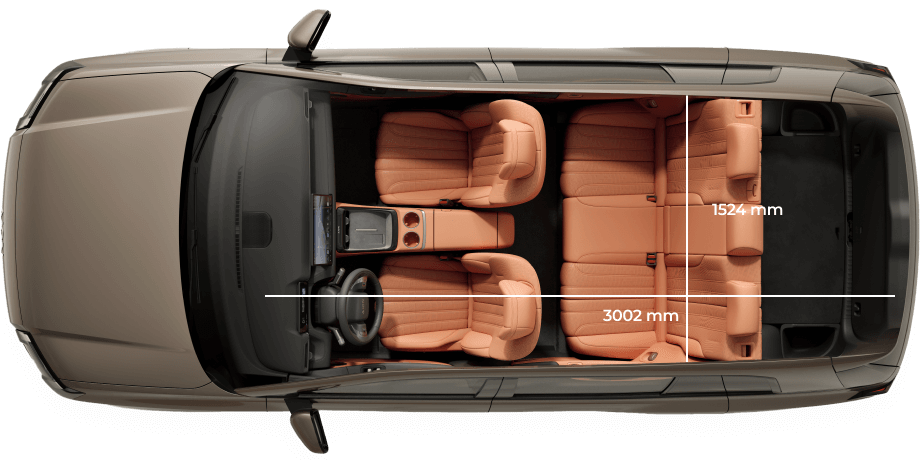 AION V oferuje wyjątkowo dużo miejsca oraz możliwość pełnego złożenia foteli, dzięki czemu wnętrze można szybko przekształcić w strefę relaksu lub noclegu.