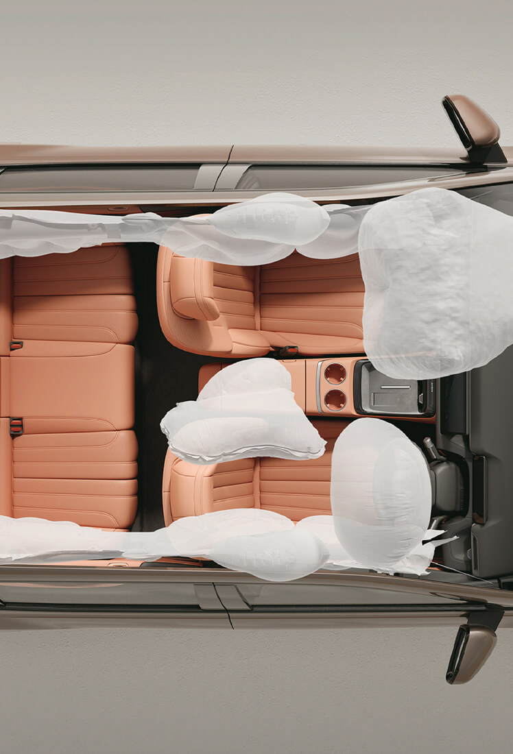 Siedem poduszek powietrznych, w tym pełne kurtyny boczne, zapewniają bezpieczeństwo w kluczowych strefach pojazdu.